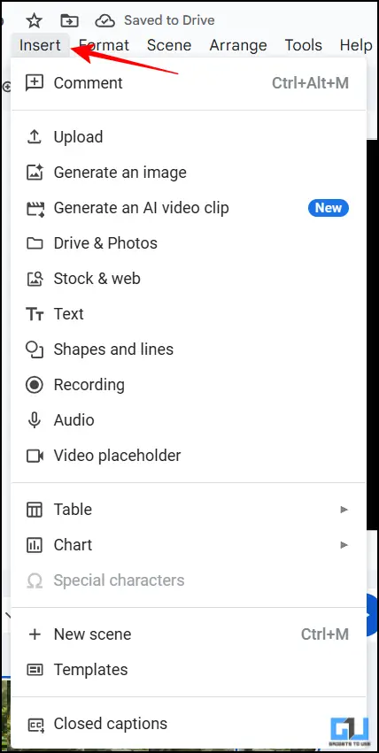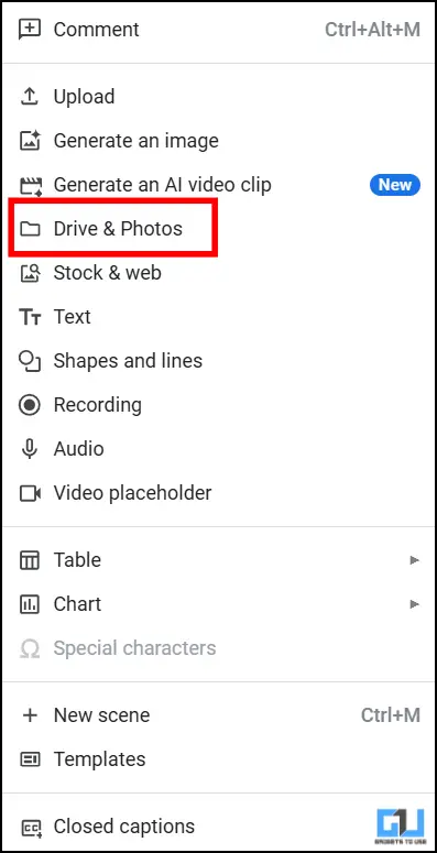 Étant donné que cela fait partie de Google Workspace, vous pouvez directement importer n'importe quel fichier, que ce soit Google Docs, des feuilles ou même des diapositives, ou de Drive également. Vous pouvez importer des diapositives à utiliser comme visuels, et les données des feuilles ou des documents peuvent être utilisées comme texte. Suivez les étapes mentionnées ci-dessous.