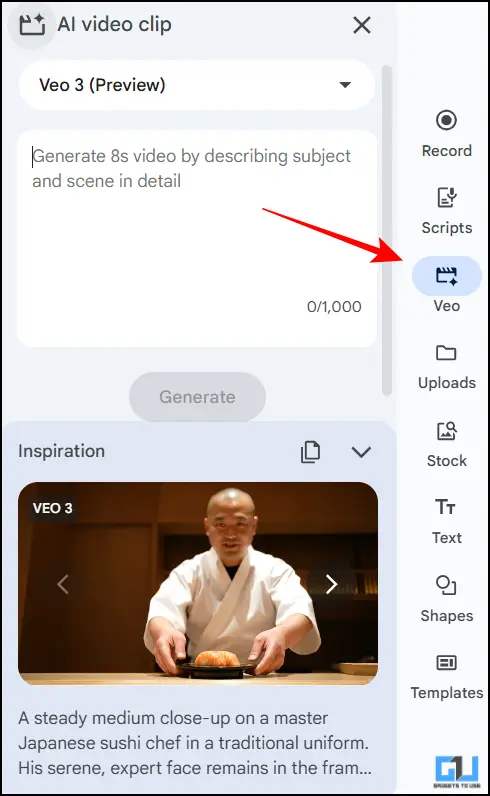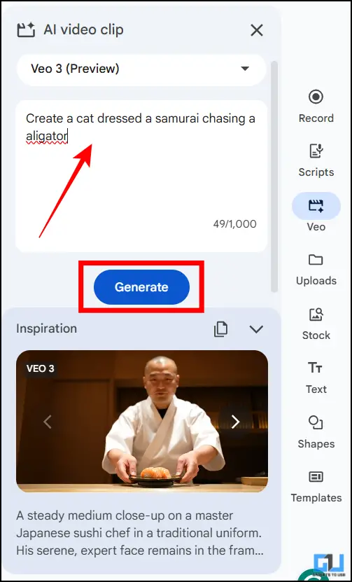 Si vous démarrez un nouveau projet et que vous n'avez aucun support de support, vous pouvez utiliser cette méthode pour créer la vôtre. Cette méthode particulière utilise VEO et peut créer n'importe quelle scène que vous imaginez. Pour créer, suivez les étapes mentionnées ci-dessous.