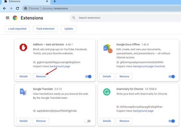 3. Désactiver ou supprimer toutes les extensions du navigateur
