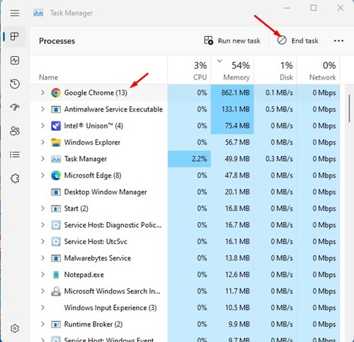 2. Lorsque le gestionnaire de tâches s'ouvre, trouvezChrome.