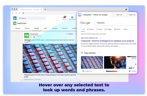 Vous avez également la possibilité de survoler un texte pour la recherche.