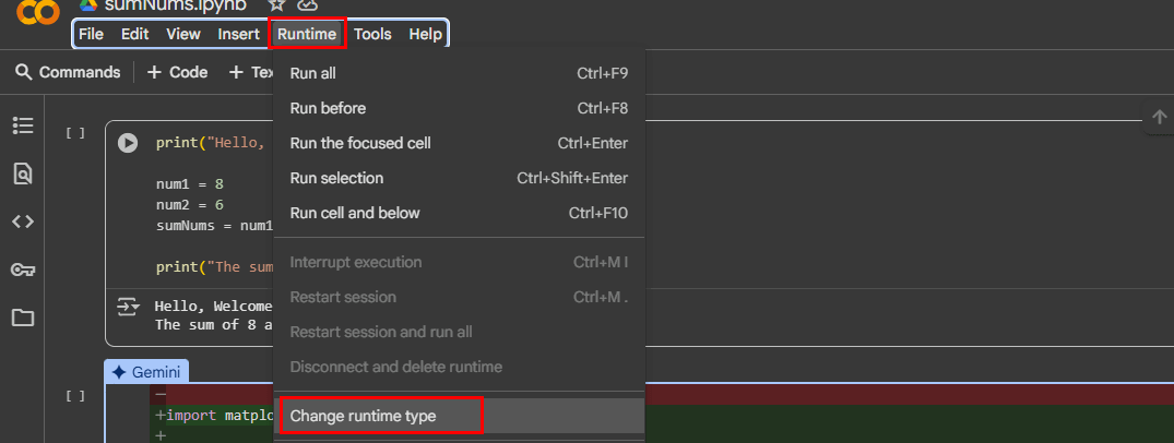 Pour les activer, accédez auDurée d'exécutionmenu et choisissezChanger le type d'exécution.