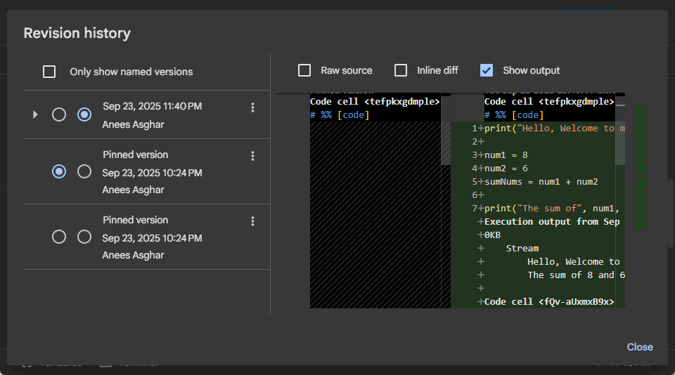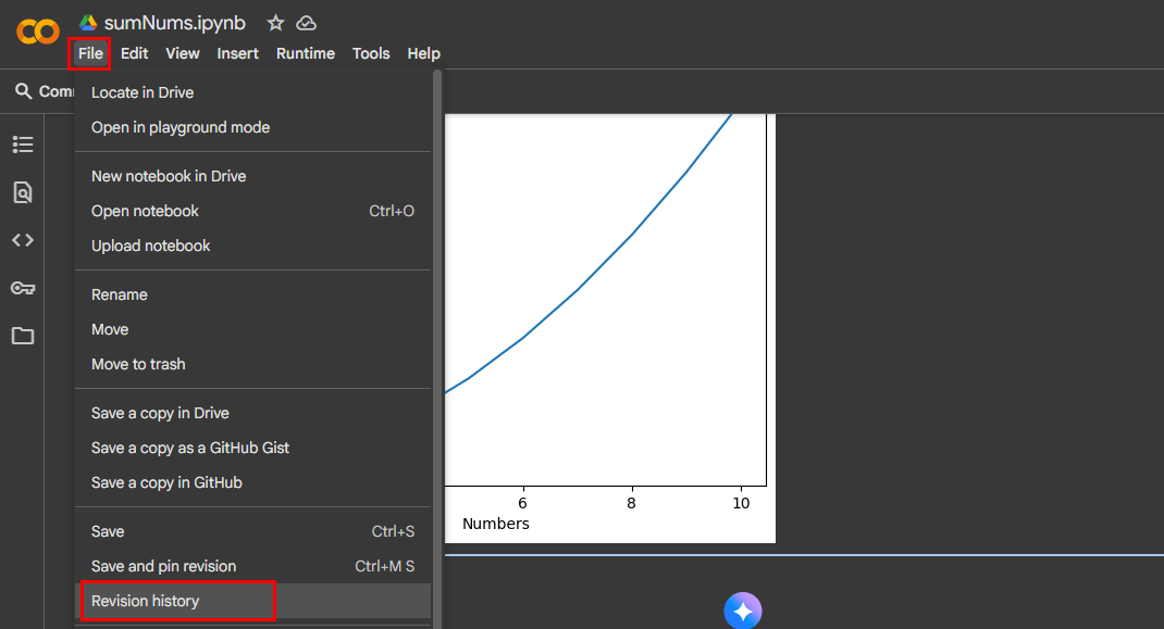 Une autre fonctionnalité utile est l’historique des versions. Colab enregistre automatiquement votre progression et vous pouvez utiliser l'historique des versions pour revenir en arrière et restaurer les versions précédentes de votre bloc-notes en cas de problème. Pour ce faire, cliquez simplementDéposerpuis sélectionnezHistorique des révisionsdans la liste déroulante.