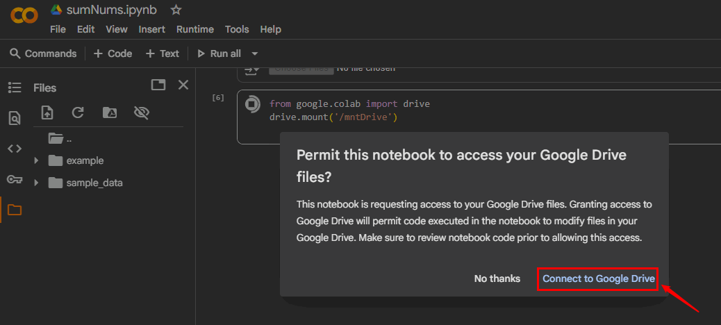 drive.mount('/mntDrive') Bien entendu, vous devez lui accorder l’autorisation d’accéder à votre Google Drive.