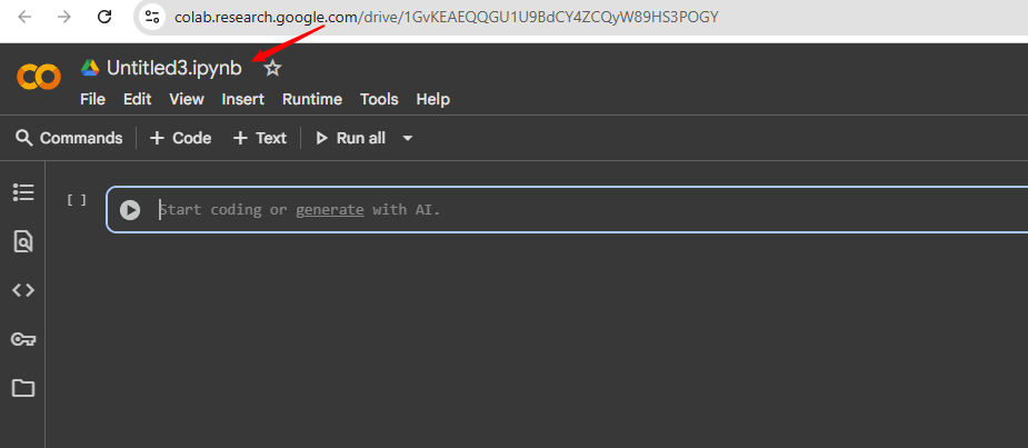Par défaut, le bloc-notes sera nommé « Untitled.ipynb » et enregistré sur votre Google Drive. Vous pouvez cliquer sur le titre en haut à gauche pourrebaptiserpuis commencez à écrire votre code Python.