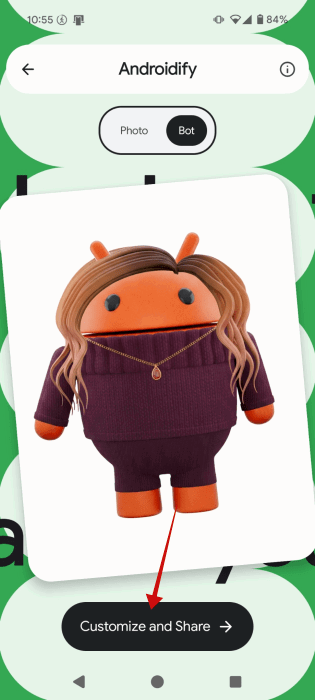 Une autre chose à ajouter ici, chaque vendredi de ce mois-ci, l'application Androidify ajoutera l'option pour animer votre bot Android dans une vidéo de 8 secondes. La fonctionnalité est alimentée par le modèle VEO 3 de Google.