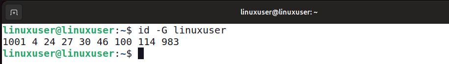 id -G linuxuser