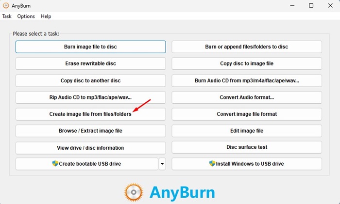 Anyburn est un excellent utilitaire léger pour créer des fichiers d'image de CD / DVD et Blu-ray Blu-ray et Blu-ray. L'application est gratuite à télécharger et à utiliser et peut convertir des fichiers USB bootables en fichiers ISO.