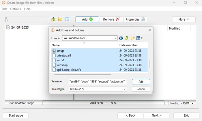 5. Parcourir leLecteur de démarrage USB&Sélectionnez tous ses dossiers. Vous devez cliquerAjouter.