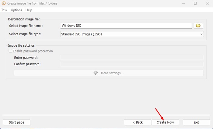 3. Cliquez sur leCréer un fichier image à partir de fichiers / dossiers.