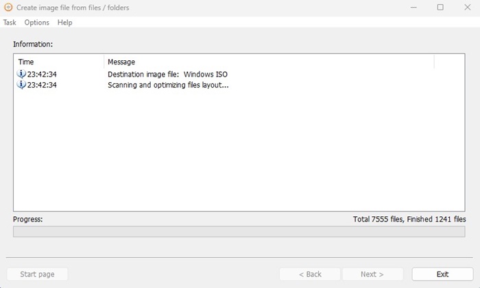 9. attendre jusqu'àAnyburns crée un fichier imageà partir de vos fichiers / dossiers sélectionnés.