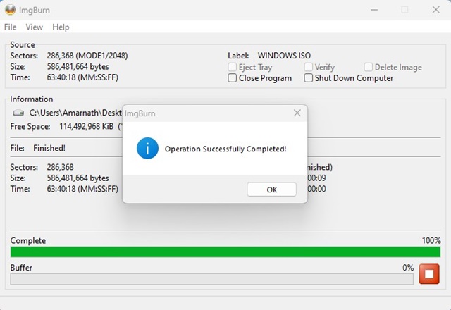 10. Une fois terminé, passez au chemin de destination. Vous trouverez le fichier ISO de l'image.