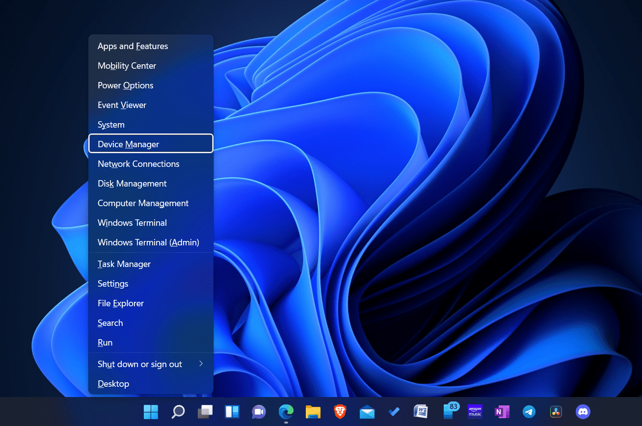 - Appuyez sur leWindows + xcombo clé, puis à partir du menu qui s'ouvre, cliquez surGestionnaire de périphériques.