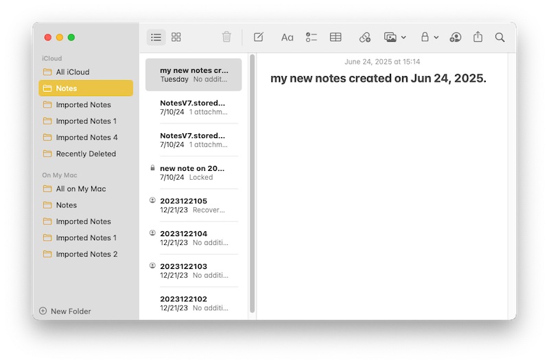 - Parcourez les notes ; si vous trouvez votre fichier manquant, déplacez-le vers un dossier principal ou votre compte iCloud.