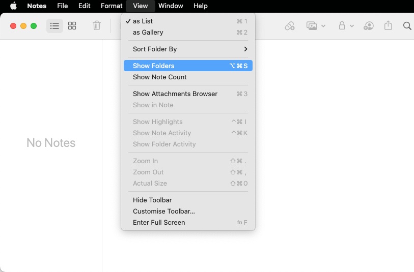 Parfois, l'application Notes n'affiche pas tous les dossiers si la barre latérale est masquée.