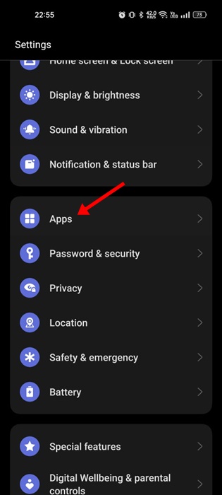 1. Ouvrez l'application Paramètres sur votre Android et appuyez surApplications.
