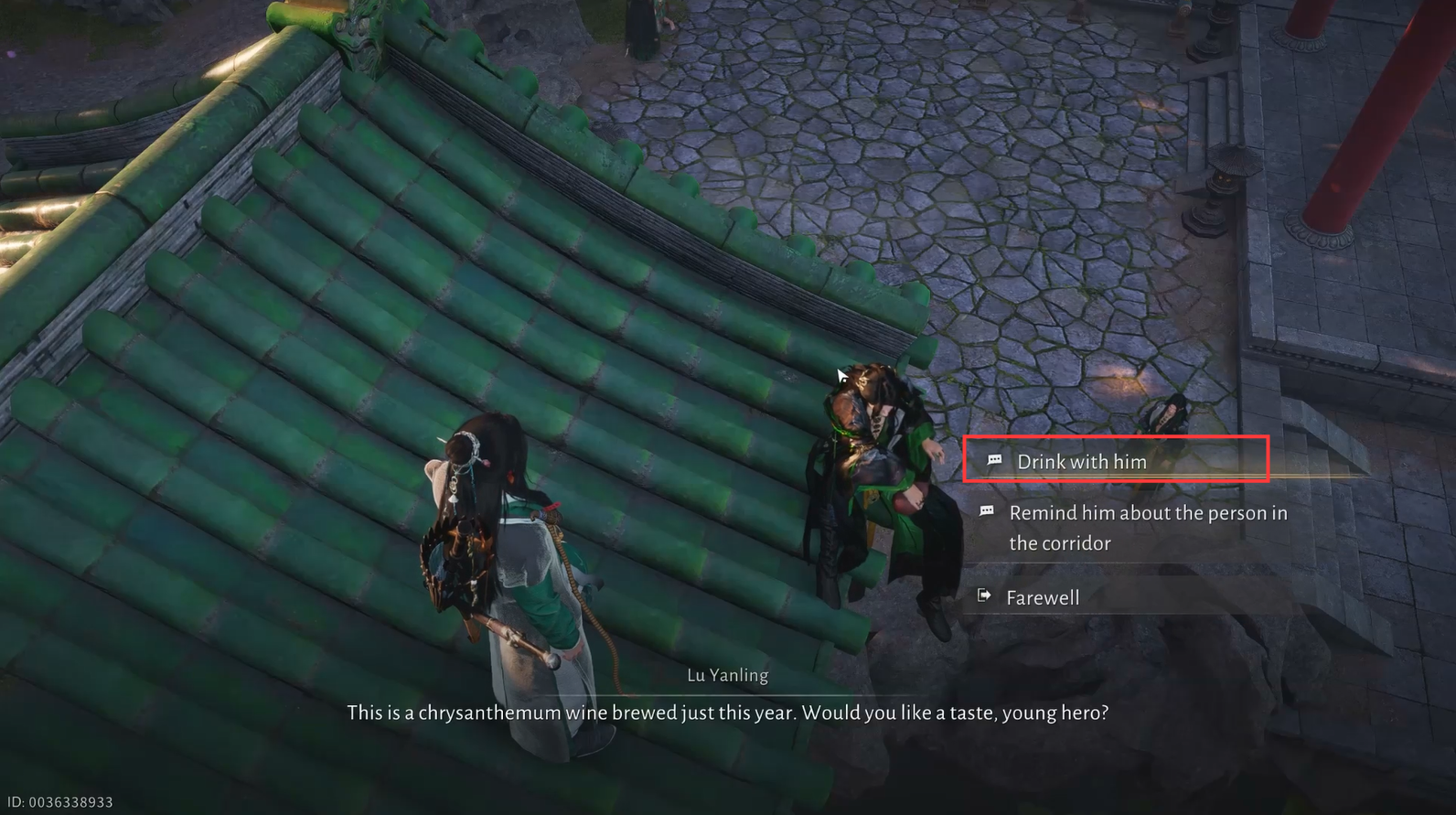 Vous y trouverez Lu Yanling assis sur un toit ; boire avec lui.