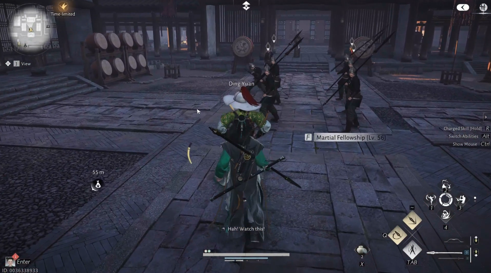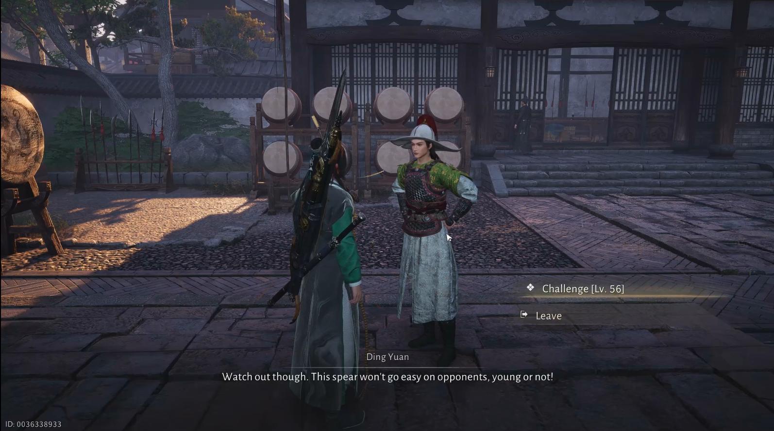 Entrez dans Prosperity Haven et entrez dans la cour d’entraînement. Ding Yuan mènera des exercices de lance avec ses étudiants ; approchez-vous de lui pour interagir.