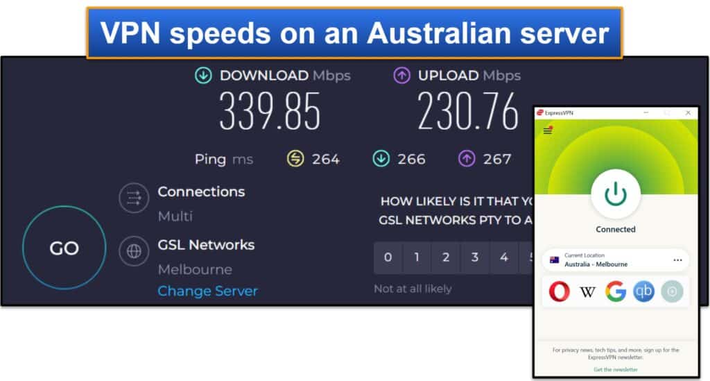 Enfin, il a effectué un test de vitesse sur un autre serveur lointain, cette fois en Australie.Tout comme avant, il a à peine remarqué des ralentissements - des sites chargés instantanément, des vidéos HD et 4K chargées instantanément et n'ont pas tamponné pendant qu'il les saut, il n'a pas connu un ping élevé en jouant à des jeux en ligne, et ses appels Skype ne se sont jamais figés ou tombés.