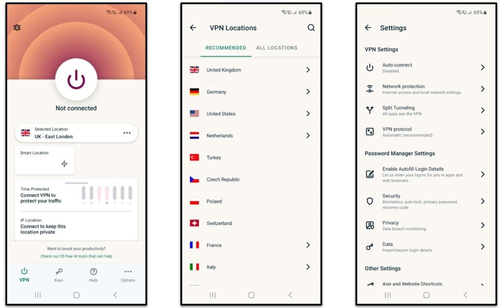 J'aime aussi la façon dont l'application iOS et l'application Android sont livrées avec un vérificateur d'adresse IP.Il s'agit d'un outil utile qui vous permet de vérifier rapidement si votre connexion au serveur VPN fonctionne. De plus, j'aime aussi la façon dont les deux applications mobiles sont livrées avec le protocole Lightway. De plus, les deux applications mobiles offrent un accès intégré au gestionnaire de mots de passe ExpressVPN Keys. Pour être honnête, je suis sûr à 100% qu'ExpressVPN a le meilleuriosetAndroïdeApplications sur le marché.