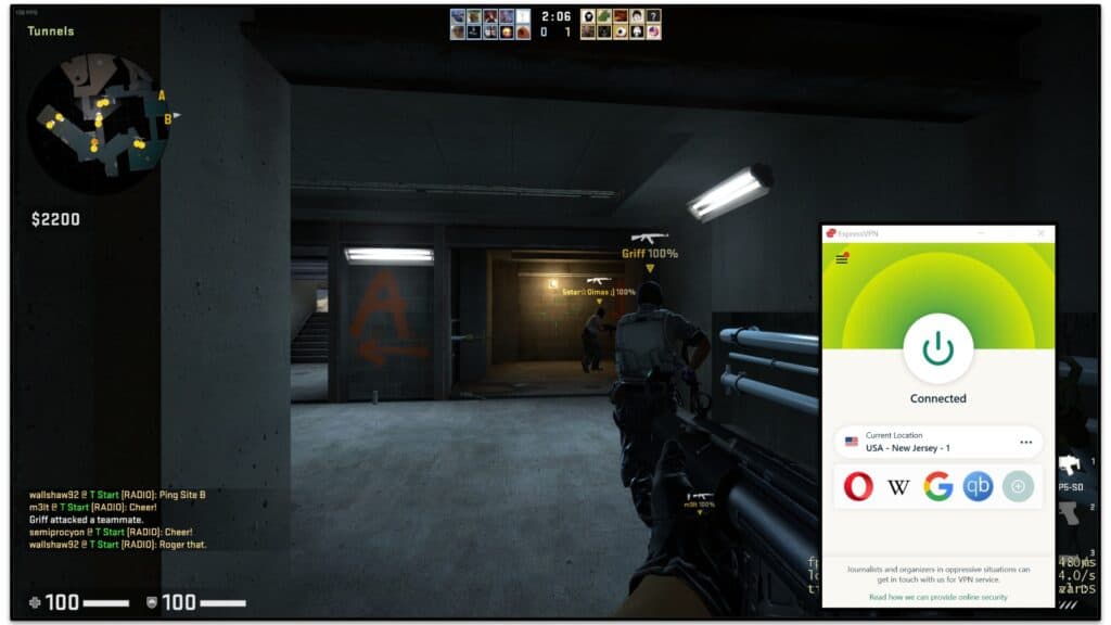 J'ai toujours une expérience de jeu très fluide lorsque j'utilise ExpressVPN.Par exemple, je me suis connecté à un serveur lointain et téléchargéCounter-Strike: Offensive mondialesur mon appareil en seulement 15 minutes (l'installation est d'environ 30 Go). De plus, lorsque j'ai joué au jeu, je n'ai jamais connu de décalage ou de déconnexion, et j'ai toujours eu un ping vraiment stable.