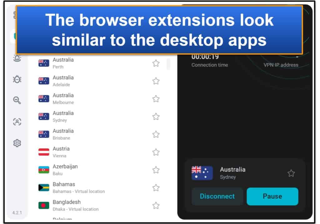 Les extensions du navigateur de Surfshark sont vraiment bonnes,car ils ressemblent à ses applications de bureau. Il est donc extrêmement facile de basculer entre eux, car vous n'avez pas besoin de vous habituer à une nouvelle interface.