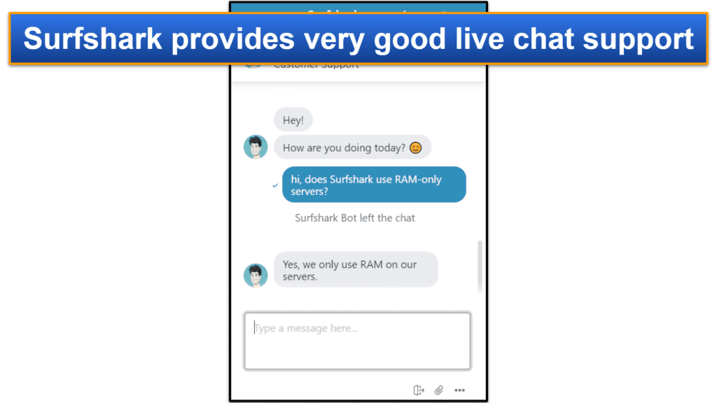 Surfshark donne accès à plusieurs canaux de support client- Il y a une assistance de chat en direct 24/7, une assistance par e-mail et une bibliothèque de support approfondie qui comprend la FAQ, des tutoriels de configuration, des guides de dépannage et des articles informatifs.
