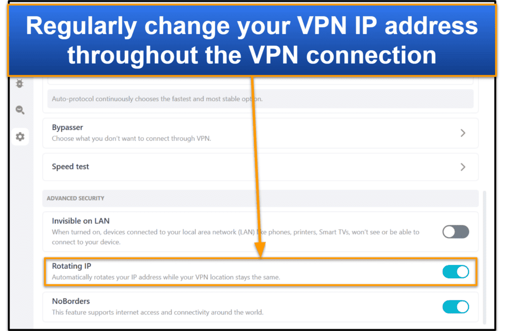 Et les applications Windows et MacOS donnent accès à des fonctionnalités utiles,comme IP Rotator et Cleanweb. Pourtant, je préfère généralement l'application Windows, car elle est également livrée avec un tunneling divisé et le test de vitesse intégré.